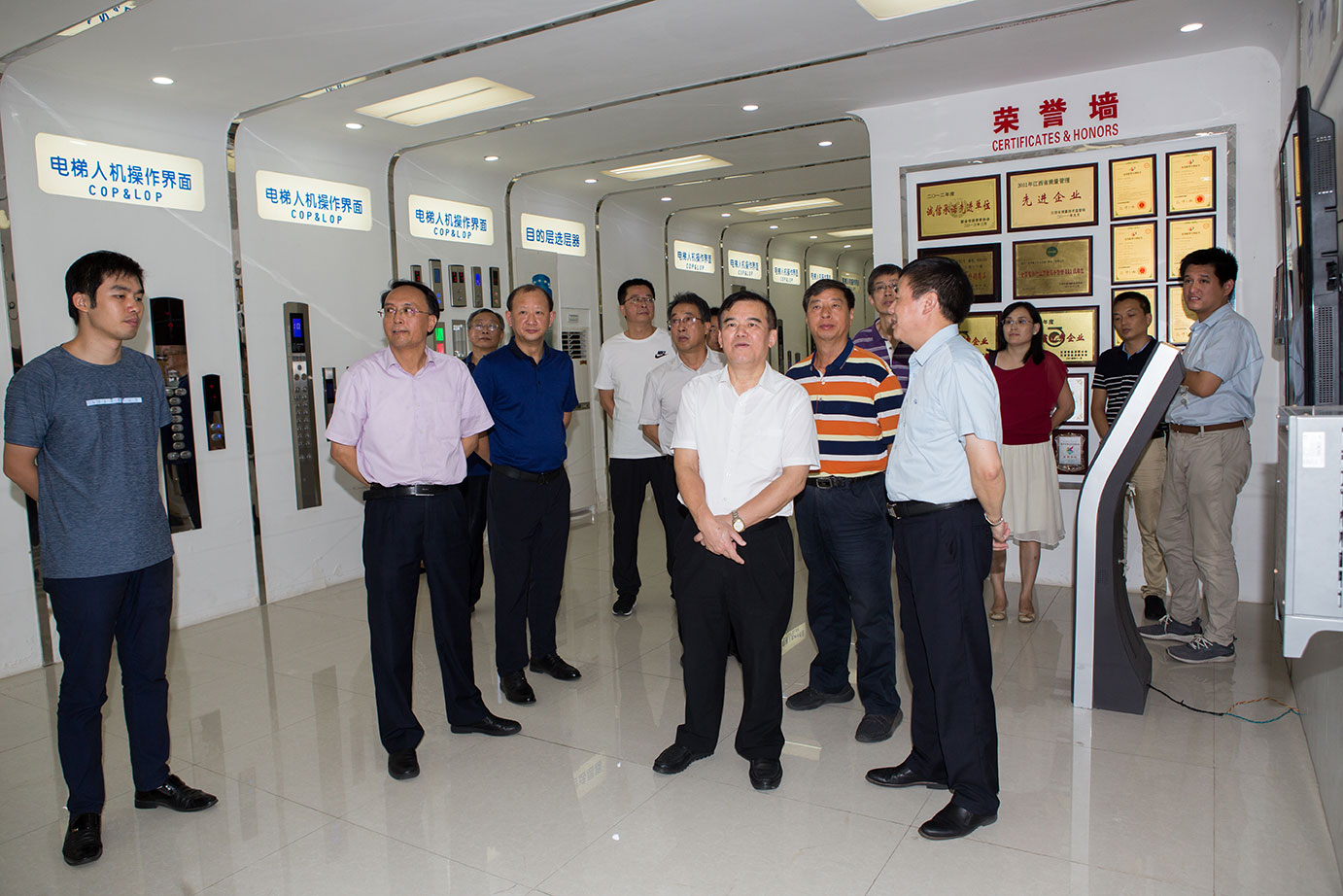 8月23日上午,省人大常委會委員、省人大法制委副主任郭兵,省人大常委會法工委副主任楊潤華等省代表團(tuán)在新余市領(lǐng)導(dǎo)的陪同下來我司調(diào)研既有住宅加裝電梯工作。長林電梯公司董事長付桂生與信達(dá)公司董事長李兆豐一同接待了來調(diào)研的領(lǐng)導(dǎo)團(tuán)。![]() 省人大領(lǐng)導(dǎo)等一行首先來到公司的展示廳,由長林電梯公司董事長向調(diào)研團(tuán)領(lǐng)導(dǎo)介紹了長林電梯公司的發(fā)展史,電梯互聯(lián)網(wǎng)智能功能、電梯主要部件的展示等等;接著帶領(lǐng)調(diào)研團(tuán)領(lǐng)導(dǎo)來到了公司生產(chǎn)現(xiàn)場實地參觀和考察。 ![]() 在隨后的座談會上,公司銷售總監(jiān)佟總就我司既有住宅加裝電梯工作進(jìn)展情況做了詳細(xì)匯報,并就相關(guān)工作提出了建議。 ![]() 郭主任強調(diào),加裝電梯這項民生工作,是解決老百姓上下樓的難題,是惠民工程。非常感謝長林電梯公司提出了具有代表性的建議與今日的接待。 |