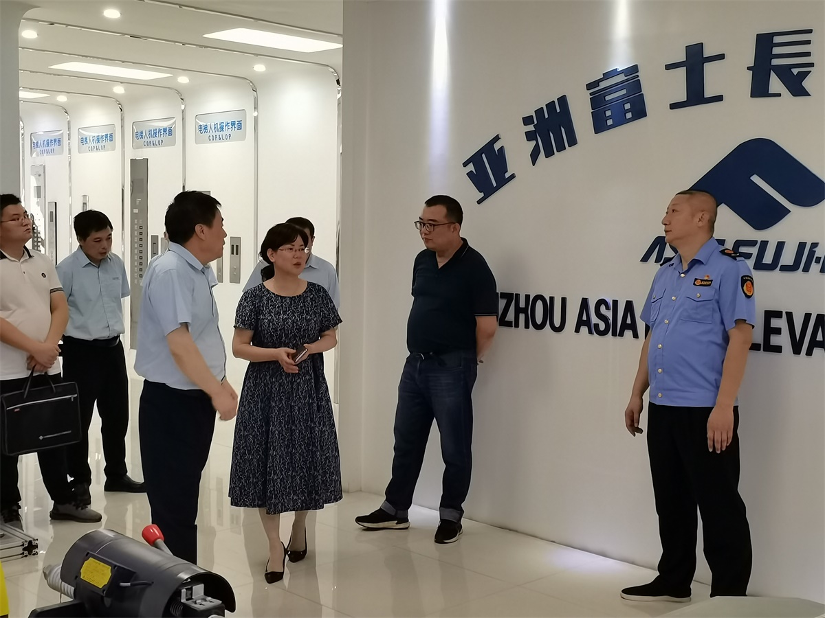 ![]() ![]() 譚副局長(zhǎng)和市局領(lǐng)導(dǎo)參觀了公司的展廳、生產(chǎn)車間,乘座了公司自主開(kāi)發(fā)的6米/秒高速消防電梯和觀光梯。