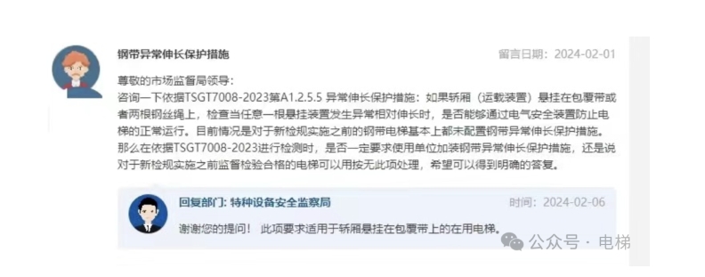 電梯鋼帶異常伸長保護措施都加裝嗎?!總局回復!